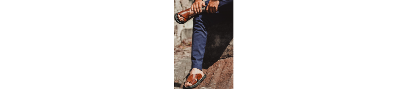 Huarache cruzado exótico de pata de avestruz corte color rojo mate, forro de piel natural y planta de piel de res en color rojo. El calzado se encuentra totalmente cosido y engrapado de planta y suela para mayor refuerzo. Cuenta con suela de llanta duradera.