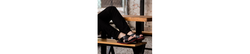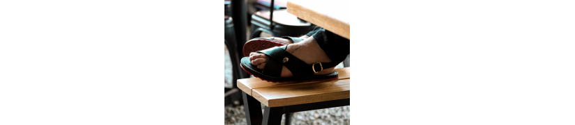 Huarache cruzado exótico de pitón corte color café, forro de piel negro y planta de piel de res en color vino. El calzado se encuentra totalmente cosido y engrapado de planta y suela para mayor refuerzo. Cuenta con suela de llanta duradera.