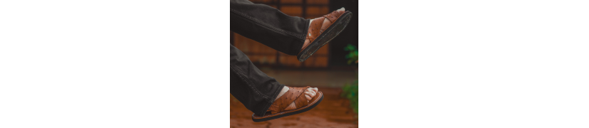 La planta en piel de panza de avestruz color marrón refuerza su carácter premium, ofreciendo comodidad y elegancia en cada paso. Complementado con una suela de llanta original con espuma entre suela, este modelo eleva el confort sin perder la autenticidad del huarache tradicional.